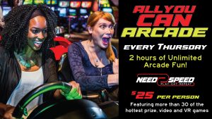Get 2 hours unlimited arcade play every Thursday for just $25 per person.